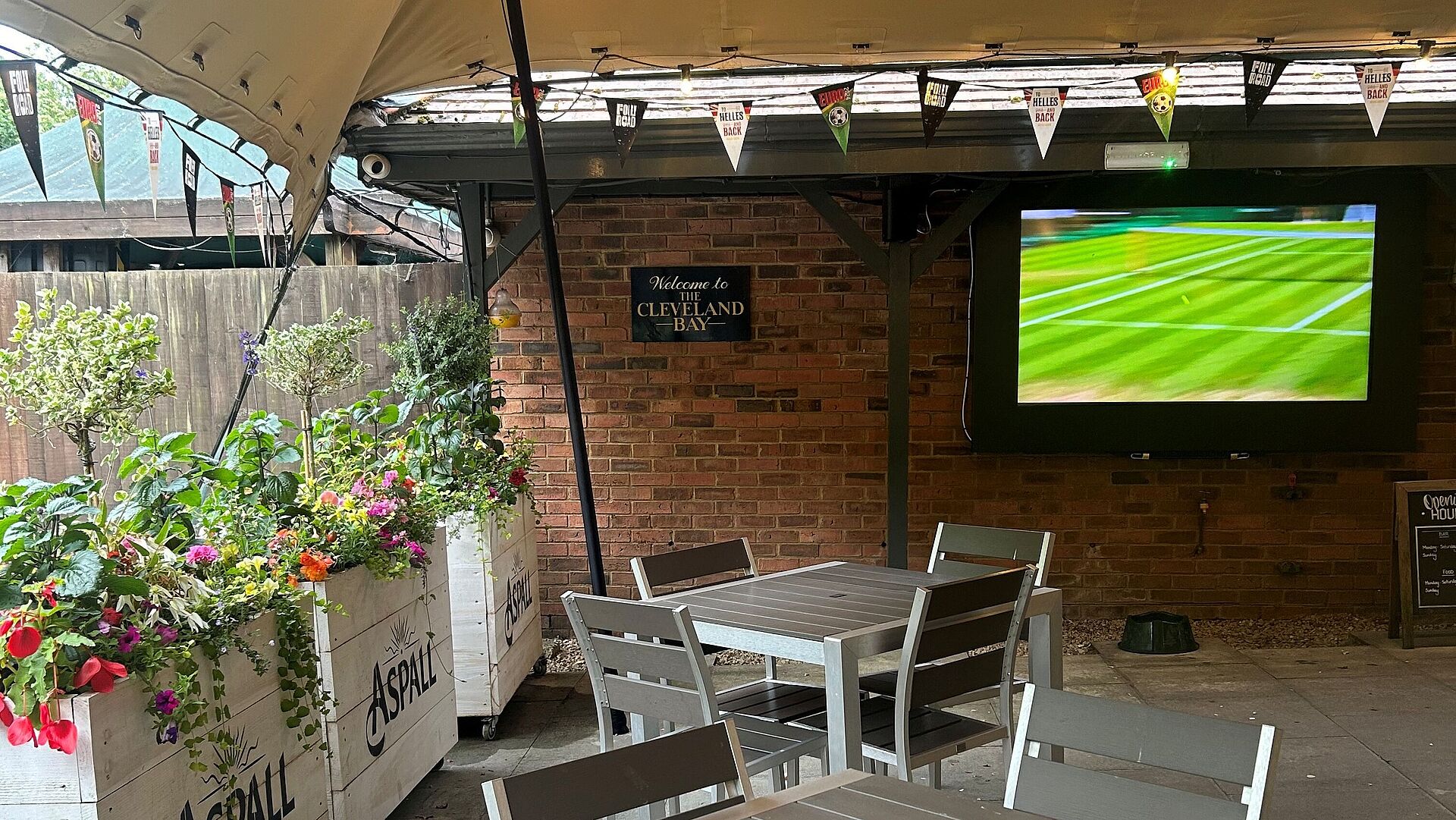 The Cleveland Bay is a family-friendly and dog-friendly pub. You’ll find us in Valley Park, with a large beer garden that’s perfect for all seasons. Come rain or shine, you can relax under the heated stretch tent with a large TV showing Sky and TNT Sports.